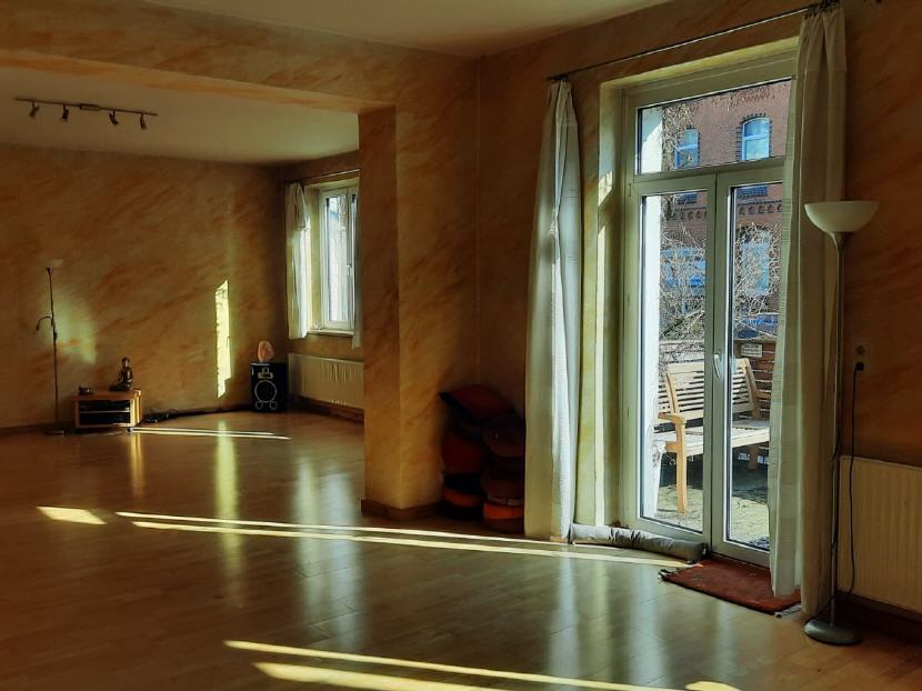 ca. 70qm, sehr hell und sehr ruhig, meditative Atmosphäre